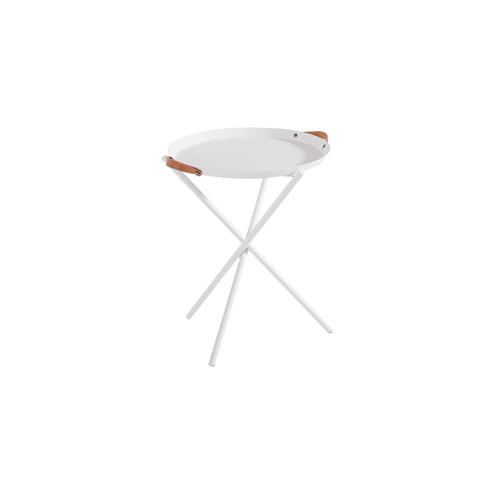 Mesa de apoio com base e bandeja em aço carbono com pintura automotiva, com alças em couro na cor caramelo. Bandeja removível. CORES DA BASE/ESTRUTURA: Branco Preto Aço Bruto