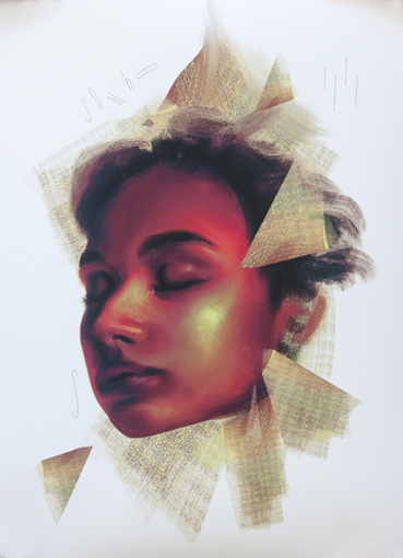 Obra da série "Psico" que mistura a pintura de um retrato tradicional com elementos abstratos.